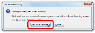 Tips Browsing dengan Aman Menggunakan Mozilla Firefox >> Cara Mengaktifkan Mode Private Browsing - Browsing aman dengan mode Private Browsing - Browsing dengan aman atau biasa disebut dengan private browsing sangat berguna sekali terutama apabila anda menggunakan komputer warnet dan sobat tidak ingin aktifitas browsing anda direkam. Lebih singkatnya sobat tidak mengizinkan browser firefox sobat untuk merekam data-data history, seperti cookies, cache, download history, Password dan lainnya. Nah, mulai dari Firefox versi 3.5 mozilla menambahkan fitur Private Browsing untuk membuat sobat browsing tanpa jejak tanpa perlu menghapus recent history setiap selesai berselancar di internet.